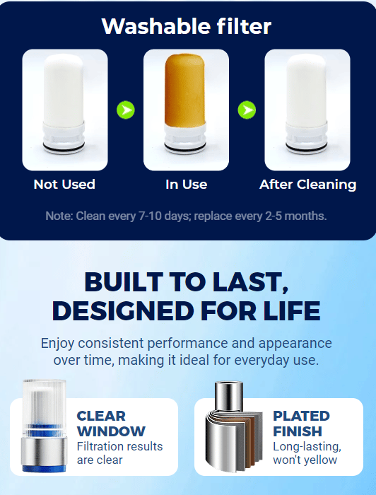 Stop worrying about impurities in your water! With our Upgraded Faucet Water Purifier, enjoy quick, clean water at your fingertips. It's designed to last, providing your family with healthy hydration for years to come.